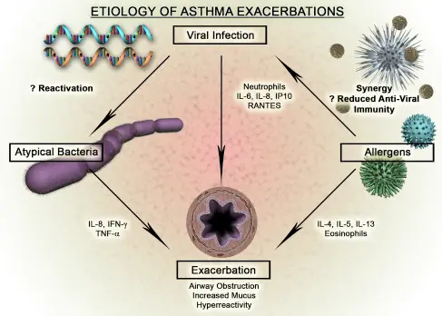 While not the cause of an acute exacerbation, chronic, poorly controlled inflammation can lead to permanent structural changes in the airways (e.g., thickening of the airway wall, increased smooth muscle mass), making them less responsive to treatment over time and potentially more prone to severe exacerbations.